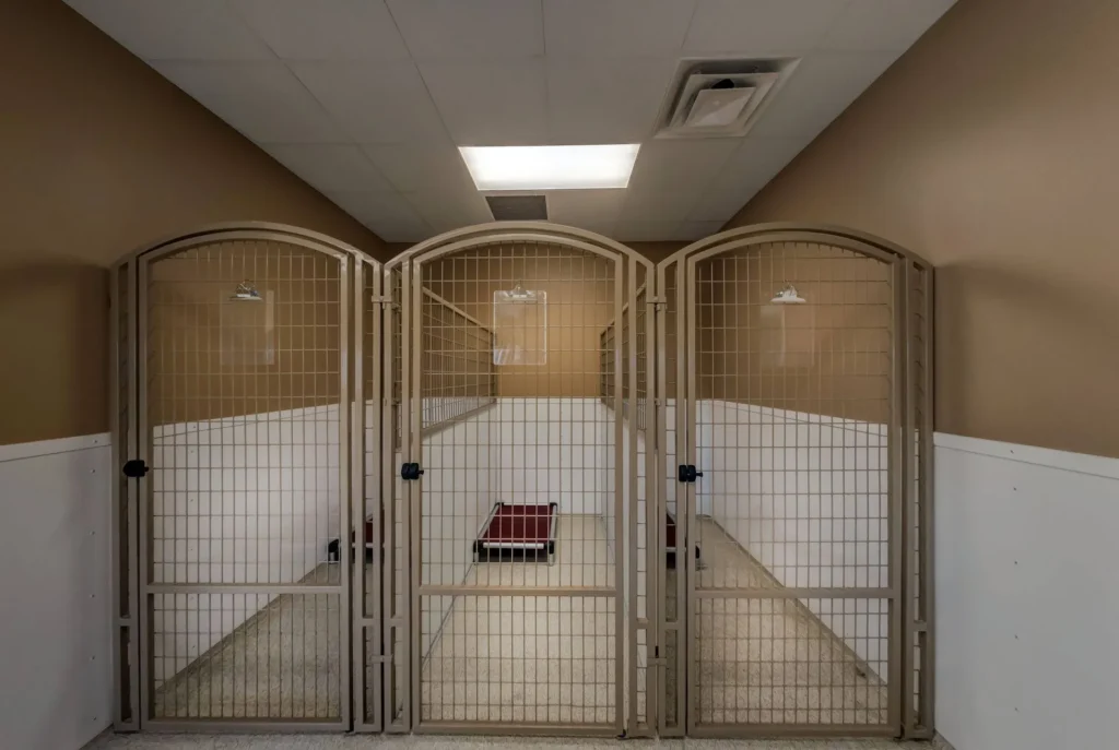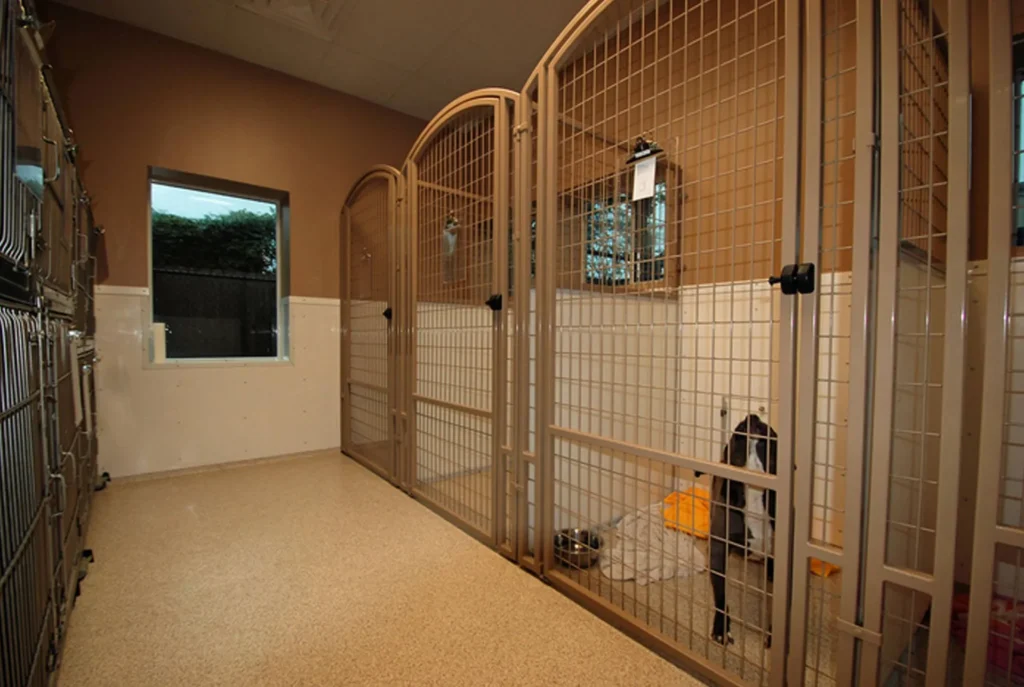 The spacious climate controlled boarding suites for dogs staying at our pet clinic are designed with safety for your pet being a priority. Suites are encased with powder coated aluminum over a hand laid epoxy floor. All canine boarding suites also include a large comfortable bed for your pet to relax while listening to the comforting music being played throughout the entire pet boarding area. Every dog that stays with us is walked at least two times daily in our large back yard. Your pet is guaranteed to enjoy their stay with us!